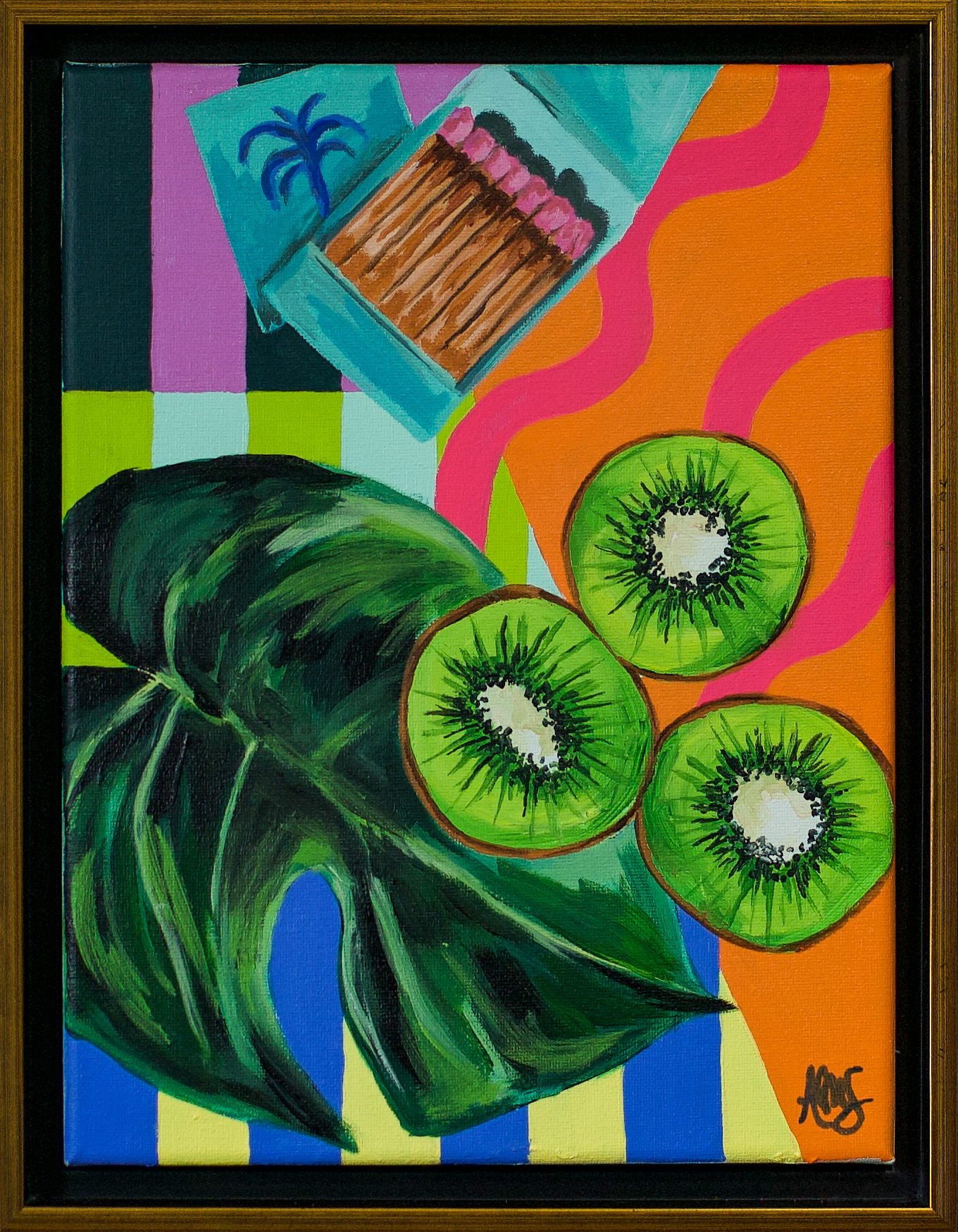 Framed with gold canvas floater frame (Measures 10.5x13.5" to outer edges of frame)